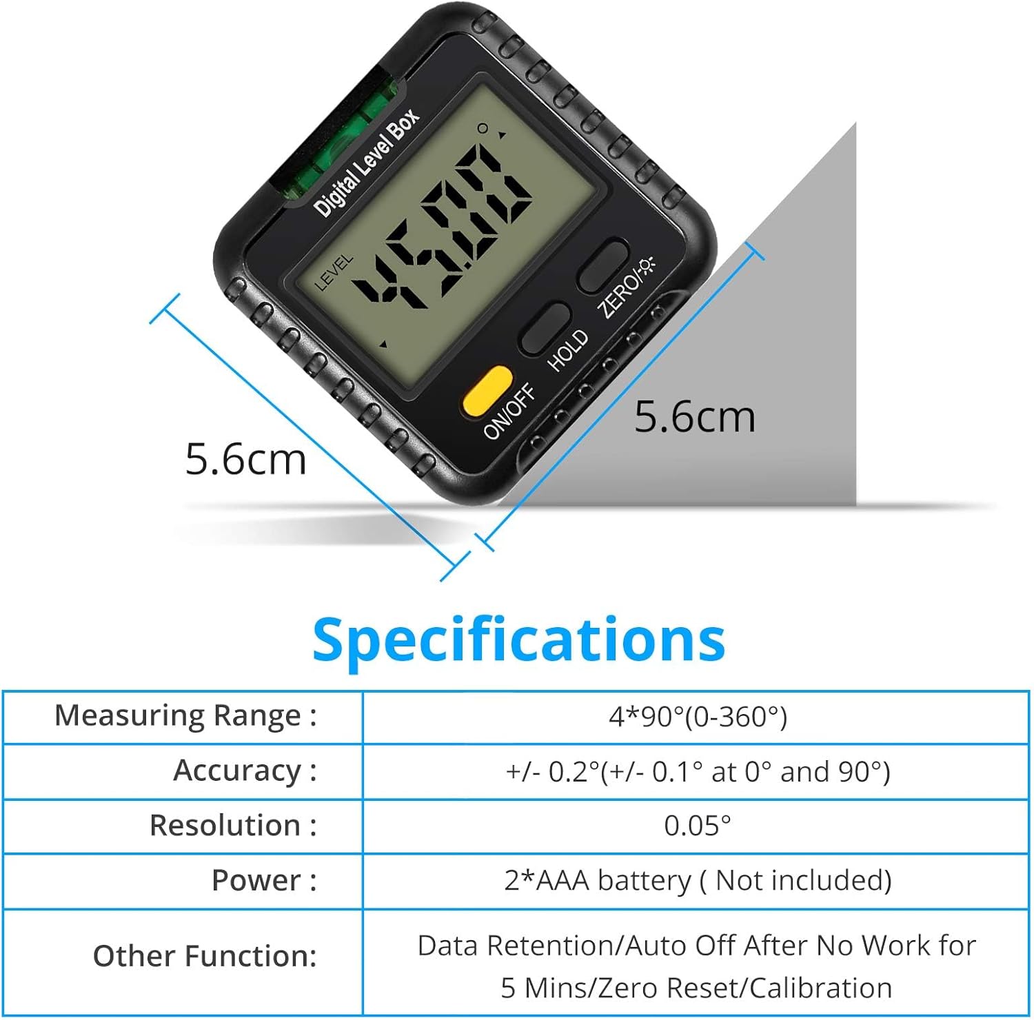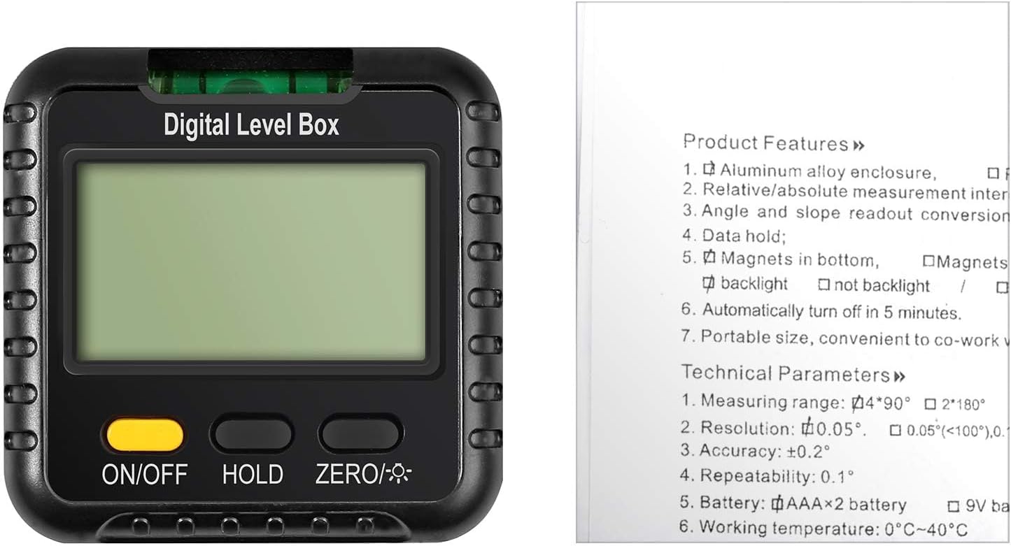 Achieve accurate angle measurements anytime, anywhere with this Digital Level Box. Featuring a bright backlit LCD screen, it ensures crystal-clear readings even in dark or low-light environments. Designed for professionals and DIY users alike, this compact angle finder delivers precise measurements from 0° to 360° with instant digital accuracy.