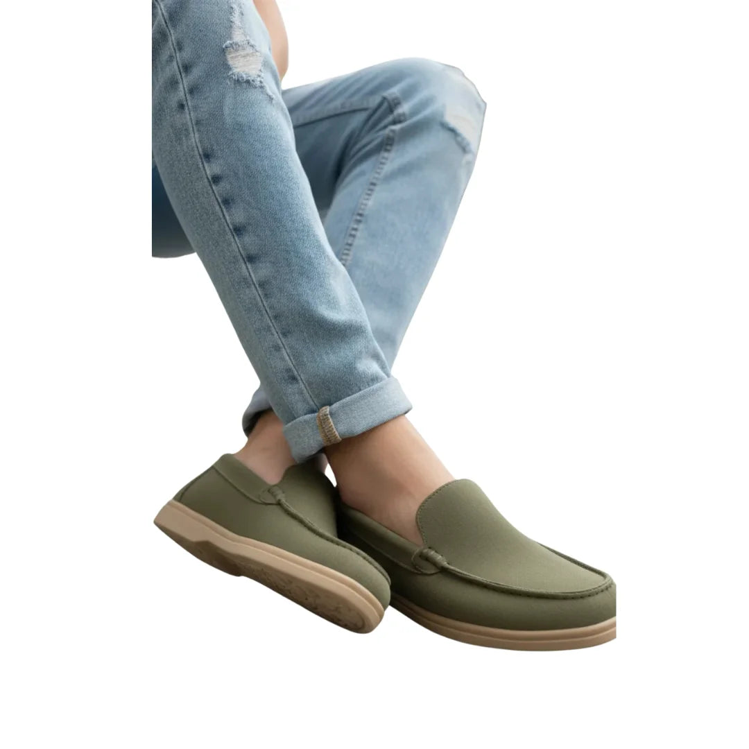 Upgrade your daily style with these premium olive green casual slip-on loafers for men. Designed for both comfort and versatility, these shoes feature a soft suede-finish upper that gives a clean and modern look. The easy slip-on design makes them perfect for quick wear, while the cushioned insole and lightweight sole provide all-day comfort.