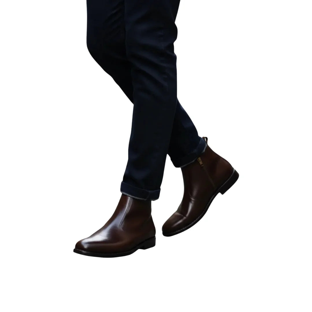 Men’s Premium Brown Leather Zipper Chelsea Boots