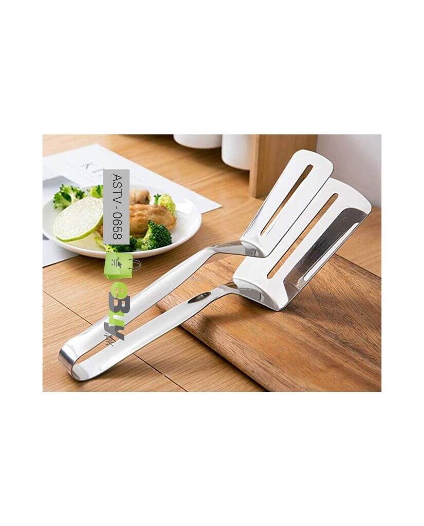 Stainless Steel Lift and flip Kitchen Frying Tong is designed to be easily used. Perfect for Food Clip/Pizzas Clamp/Bread Tongs/Fried Steak Clamp/Barbecue Tongs/Beefsteak Turner Flipper. This Multifunctional Food Clip for Beefsteak is made of high quality food grade stainless steel with a mirror finish,very sturdy,very easy to clean.The slotted turner allows liquids to drain while turning fish. It also can stop messy oil spills and drips. You can slide beneath food easily with the help of this thin and flexible edge- beveled shape won’t let food easily slide off! It is not only a frying shovel but also a clamp,it’s an indispensable tool for fried steak. Special hollowing design facilitates oil leakage and reduce excess oil,wide-mouthed tongs are easy to grasp,whether it’s vegetables or big steak or bread. Comfortable grip makes you lift and turn food with ease, avoid germs and prevent the risk of burns by using it.Compact size and light weight, easy to use and convenient to store, saving space by hanging it. Made of high quality food grade stainless steel with a mirror finish. Dishwasher safe for easy cleanup.